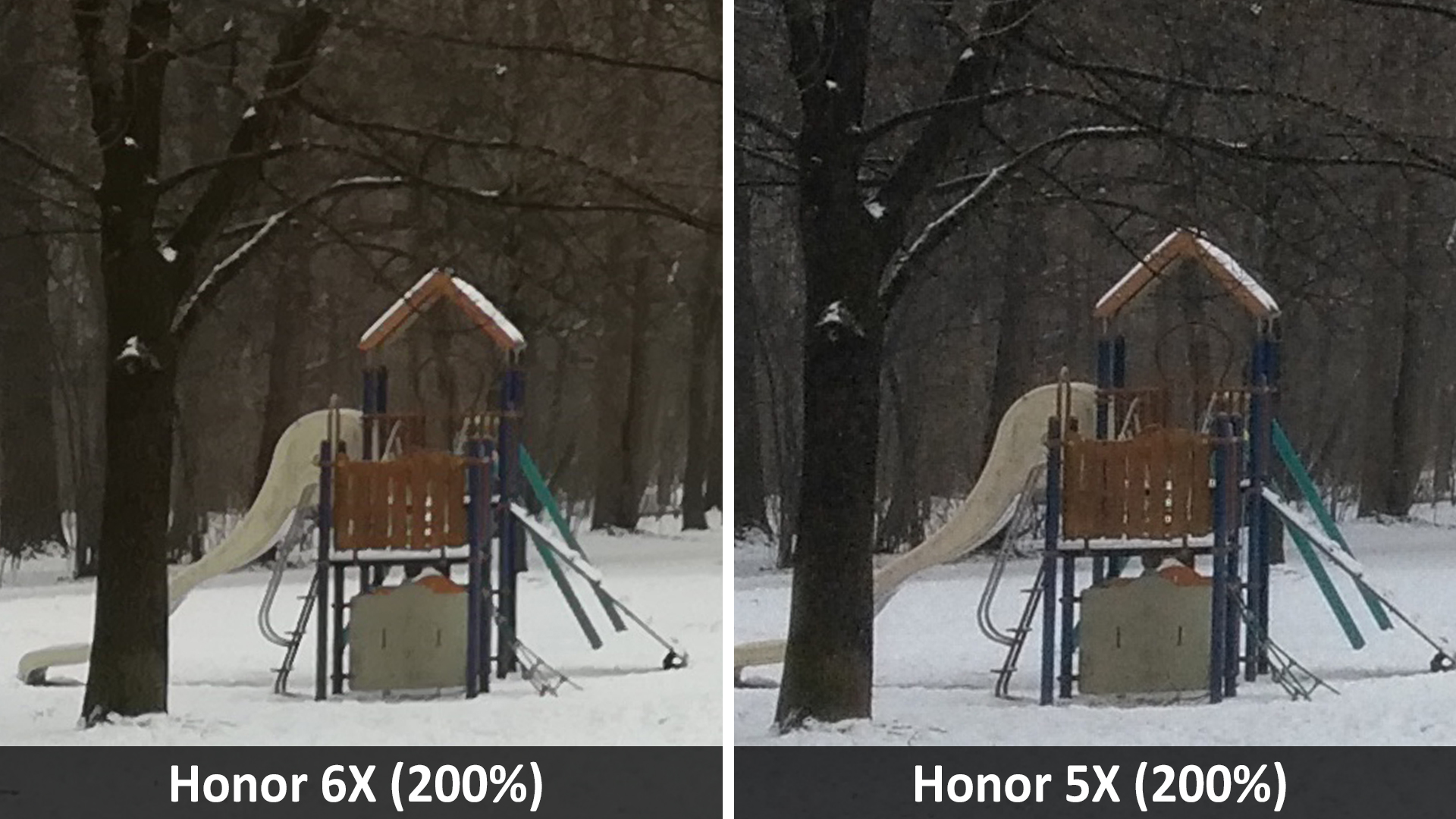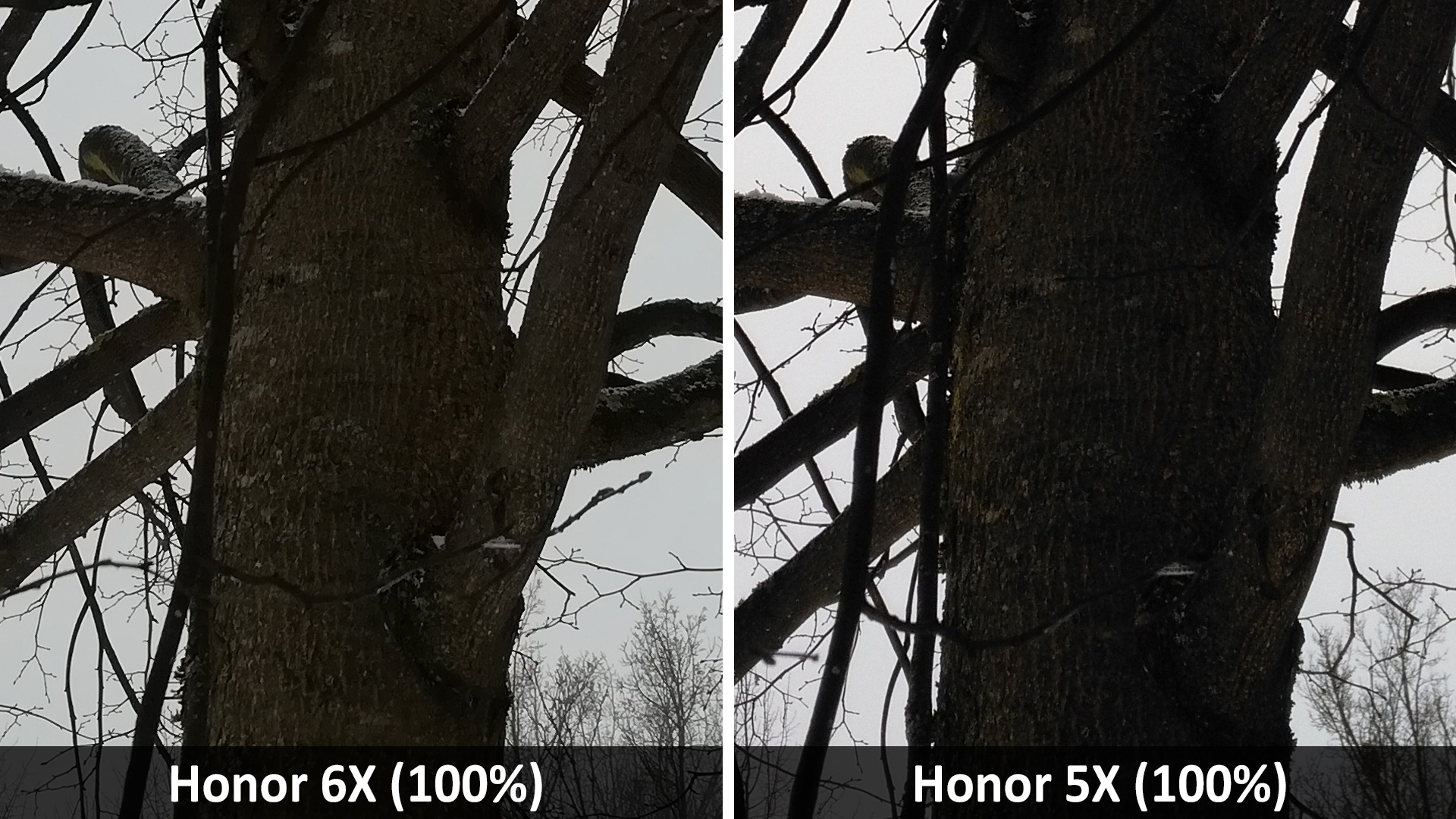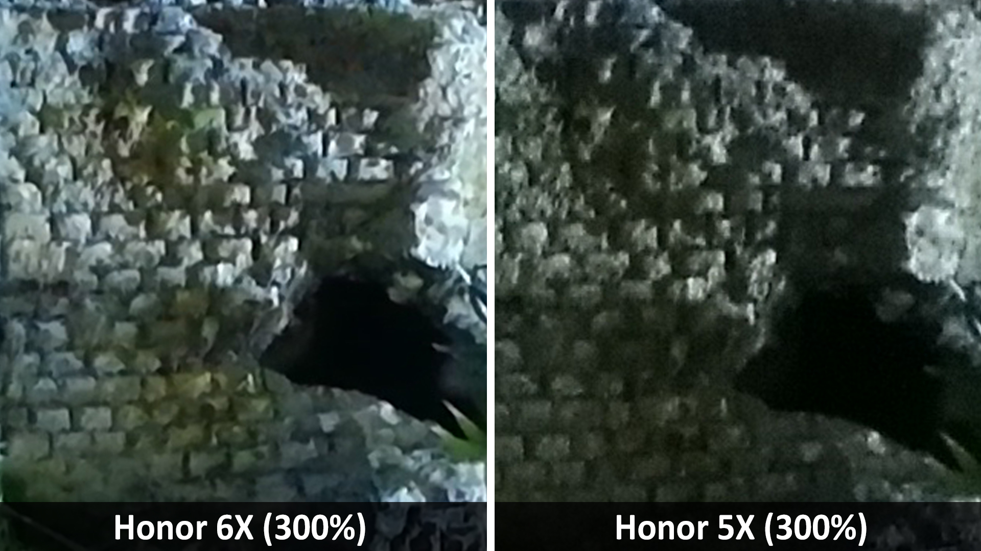 Das Honor 6X schlägt sich unter mittleren Lichtbedingungen, wie etwa bei starker Bewölkung, besser als das 5X. Die Aufnahmen wirken nahezu wie beleuchtet – beim 5X gehen hingegen viele Details verloren. Das zeigt sich auch im direkten Abgleich: