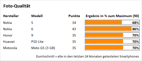 Die Wahl zwischen Nokia 5 und Nokia 6 ist leider keine leichte – auch nicht nach dem intensiven Test. Denn beide Modelle haben ihre Vor- und Nachteile: So verfügt das Nokia 6 über das größere, höher auflösende und qualitativ bessere Display. Der tatsächlich nutzbare Speicher fällt mit netto 21 statt 7 Gigabyte rund dreimal üppiger aus, und die Fotos des Nokia 5 mit 13 statt 16 Megapixel gefallen nicht ganz so wie beim Nokia 6 („gut“ statt „sehr gut“). Die Videos ernten gar nur ein „Ungenügend“ anstelle eines „Mangelhaft“ – wobei der Unterschied auf diesem Niveau dann auch nicht mehr wirklich ins Gewicht fällt.