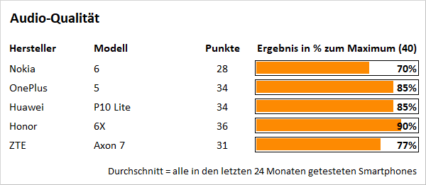 Ein wenig Kompromissbereitschaft ist beim Klang am Kopfhörer-Ausgang gefragt, der mangels Höhen nur ein „Befriedigend“ kassiert. Und der Prozessor mit seiner um 43 Prozent unterdurchschnittlichen Leistung dürfte der Zielgruppe eines 250-Euro-Handys völlig reichen. Doch ambitionierte Gamer oder Interessenten, die aus anderen Gründen reichlich PS unter der Haube brauchen, sind beim Nokia 6 fehl am Platze.