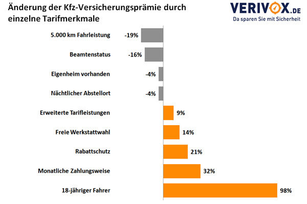 Kleine Zusatzangaben können die jährlichen Kosten deutlich mindern. Wer angibt, Beamter zu sein, kann die Prämie um 16 Prozent senken. Besitzer einer Garage erhalten einen Rabatt von 4 Prozent. Der Besitz eines Eigenheims wird ebenfalls mit einem Preisnachlass von 4 Prozent berücksichtigt.